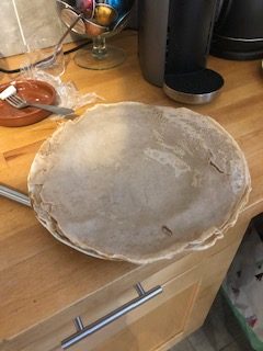 - Now the fun part, make the crepes. It is a little tricky as buckwheat has no gluten and therefore the crepes tend to break. if not careful. Heatup a flat non sticky skillet over high heat. The "non-sticky" part is very important. Otherwise, your guests might not be too impressed with the result..... Use a piece of butter to grease the skillet. I hold it in a paper towel to keep my fingers dry. You may also use a paper towel soaked with oil.