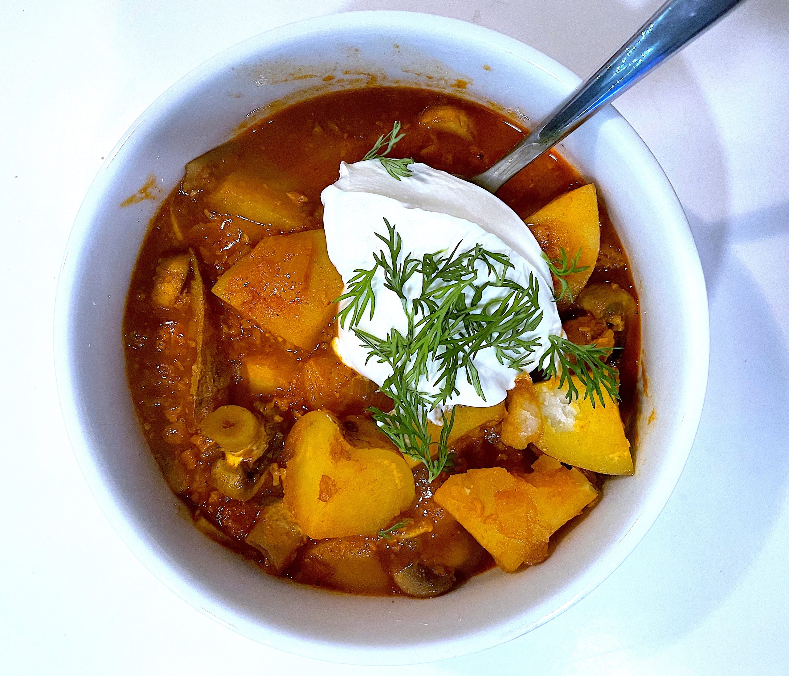 Serve with a dollop of sour cream and some fresh dill. Enjoy!