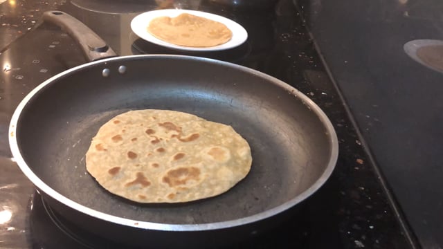Add one tortilla at a time. Roll out a new tortilla while the other one cooks.