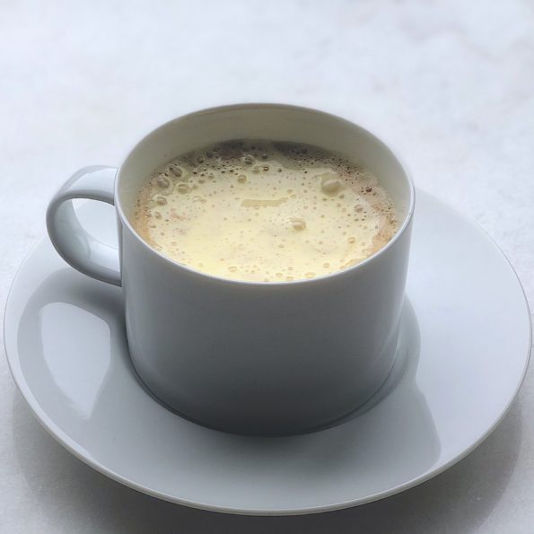 Pour your coffee into a cup and then add the sweetened egg mixture on top. Drink and enjoy!